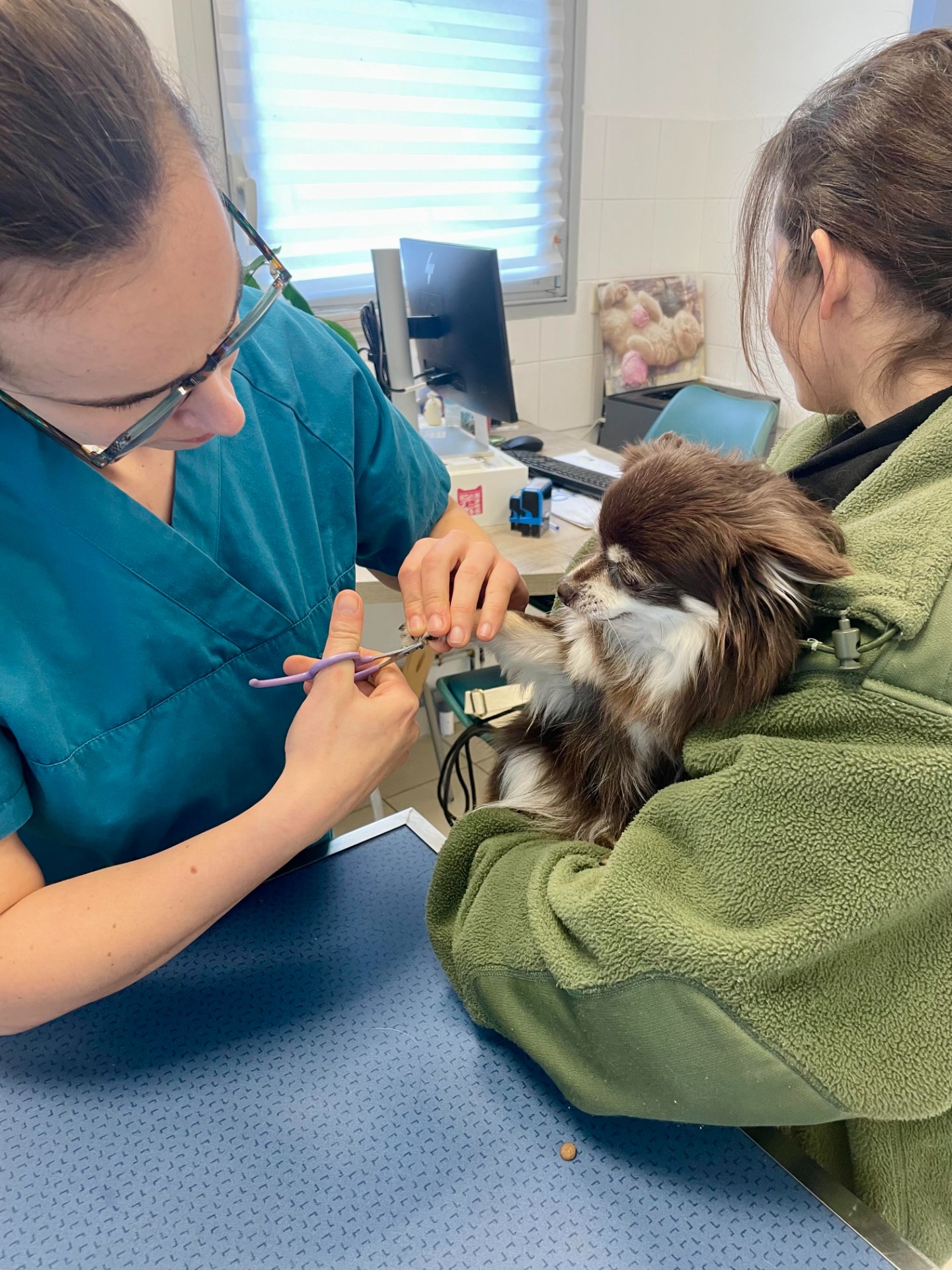 Si couper les griffes de votre chien vous semble impossible, n'hésitez pas à faire appel à un professionnel. À la Clinique vétérinaire du pré Athelin, nous pouvons vous aider dans le cadre d'une consultation. La vétérinaire pourra vous montrer et vous accompagner dans le geste. De plus, nous avons des coupes griffes au comptoir, les mêmes que nous utilisons en soin !